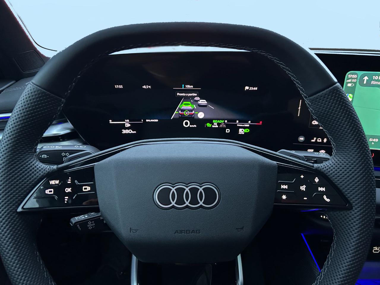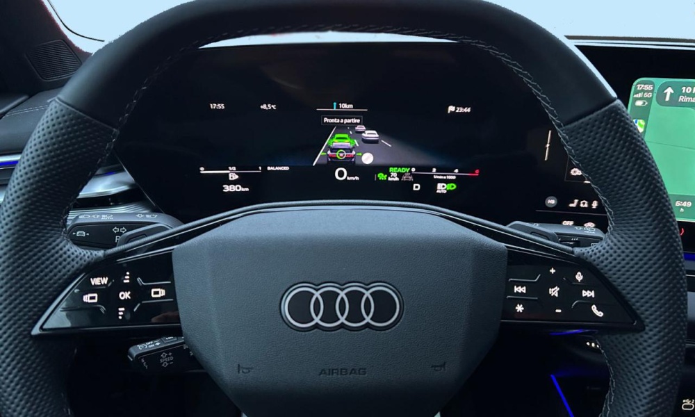 Vettura ufficiale aziendale casa madre Audi AG, dotata di numerosi accessori tra i quali il pacchetto S line interno/esterno, MMI Experience Plus con due display anche lato passeggero, tetto panoramico in vetro, cruise control adattivo ACC con guida assistita, anti collisione, sensori parcheggio ant e post con assistenza al parcheggio, telecamera surround view 360°, sensore luci e pioggia, Apple CarPlay / Android Auto, specchio retrovisore con funzione auto anabbagliante, ricarica ad induzione per smartphone, sedili sportivi S line con supporto lombare, volante sportivo S line multifunzione, navigatore, sedili riscaldabili elettr., riconoscimento segnali stradali, pacchetto assistenza alla guida, pacchetto comfort, mantenimento corsia, Virtual Cockpit Plus, specchietti retrovisori riscaldabili/ripiegabili elettricamente con funzione auto anabbagliante, modanature interne in alluminio, predisposizione gancio traino, pacchetto illuminazione ambiente, vetri posteriori oscurati, pack black esterno, fari Matrix dinamici, fanali posteriori a led pro, cerchi in lega da 19" bruniti, chiave comfort - keyless go, mantenitore corsia,