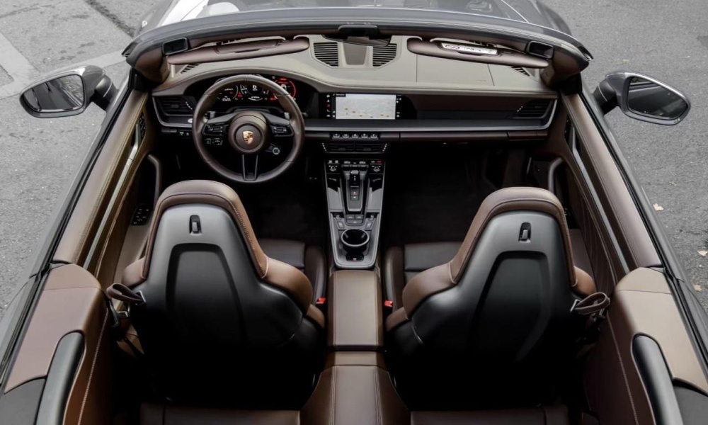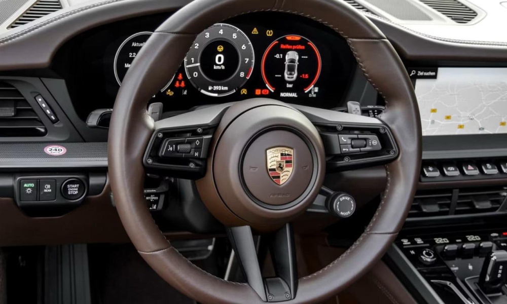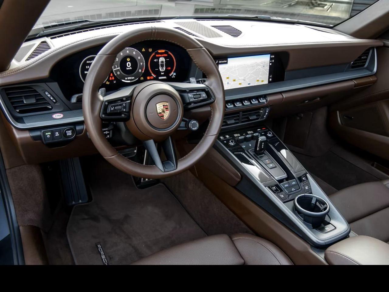 Vettura ufficiale aziendale casa madre Porsche AG, Carrera 992.2, dotata di numerosi accessori trai quali il colore esterno Ardesia neo, cerchi in lega Carrera Classic 20/21", coprimozzi con scudo Porsche a colori, interni in pelle totale Club marrone tartufo, sedili sportivi adattivi a 18 vie con pack memori, riscaldamento e ventilazione dei sedili anteriori, Exclusive Manufaktur pacchetto esterni in grigio antracite, fari full led HD-Matrix, pacchetto pelle 930, scudo Porsche sui poggiatesta, volante sportivo GT riscaldabile, servosterzo plus, Liftsystem - sistema di sollevamento asse anteriore, impianto di scarico sportivo, serbatoio 84 litri, sensori parcheggio ant e post con assistenza al parcheggio, telecamera surround view 360°, assistente corsia, Porsche InnoDrive incluso cruise control adattivo, anti collisione, Hi Fi Bose Surround Sound System, schienale posteriore verniciato in argento scuro, pacchetto interni in Diamar argento